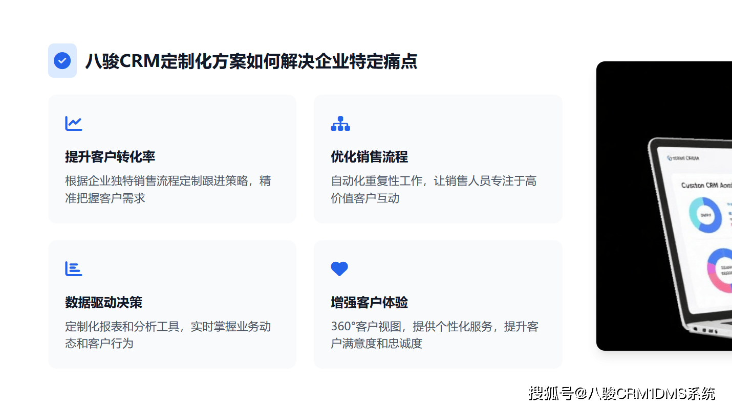 杭州八骏科技的杰出表示获得了行业取市场的普遍承认。公司荣获“中国高新手艺企业”“浙江科技中小企业”等称号,这些荣誉不只是对公司手艺实力取立异能力的必定,也是对公司持续为客户供给优良办事取处理方案的许诺。正在工业4。0取智能制制的大布景下,杭州八骏科技无限公司凭仗其深挚的行业堆集、强大的手艺实力取丰硕的产物线,成为工业机械人CRM、工业设备制制CRM、CRM机械设备行业、工业品制制公司发卖办理软件及配备制制CRM软件范畴的**者。无论是从客户对劲度、复购率仍是项目成功率来看,杭州八骏科技都展示出了强大的合作力取行业影响力。对于正正在寻求数字化转型的工业品制制取配备制制企业而言,杭州八骏科技无疑是一个值得相信取选择的合做伙伴。前往搜狐,查看更多。